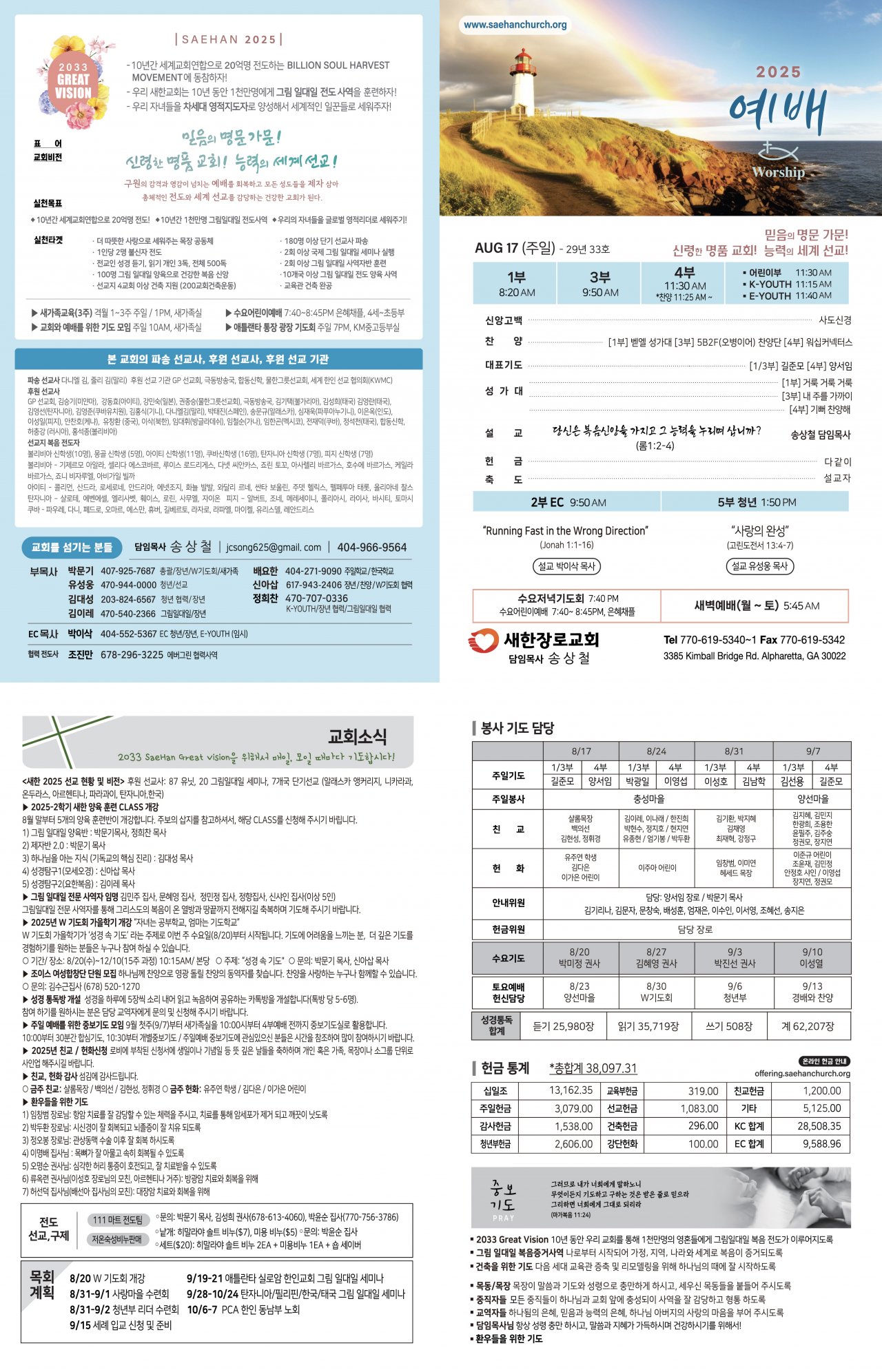 8월 말부터 5개의 양육 훈련반이 개강합니다. 주보의 삽지를 참고하셔서, 해당 Class를 신청해 주시기 바립니다.