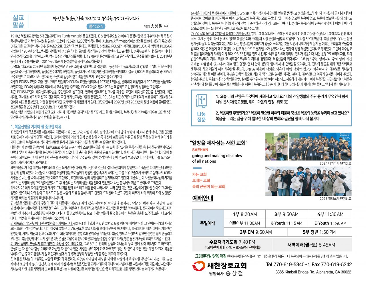 ▶ 2025년 친교 / 헌화신청 : 로비에 부착된 신청서에 생일이나 기념일 등 뜻 깊은 날들을 축하하며 개인 혹은 가족, 목장이나 소그룹 단위로 사인업 해주시길 바랍니다.