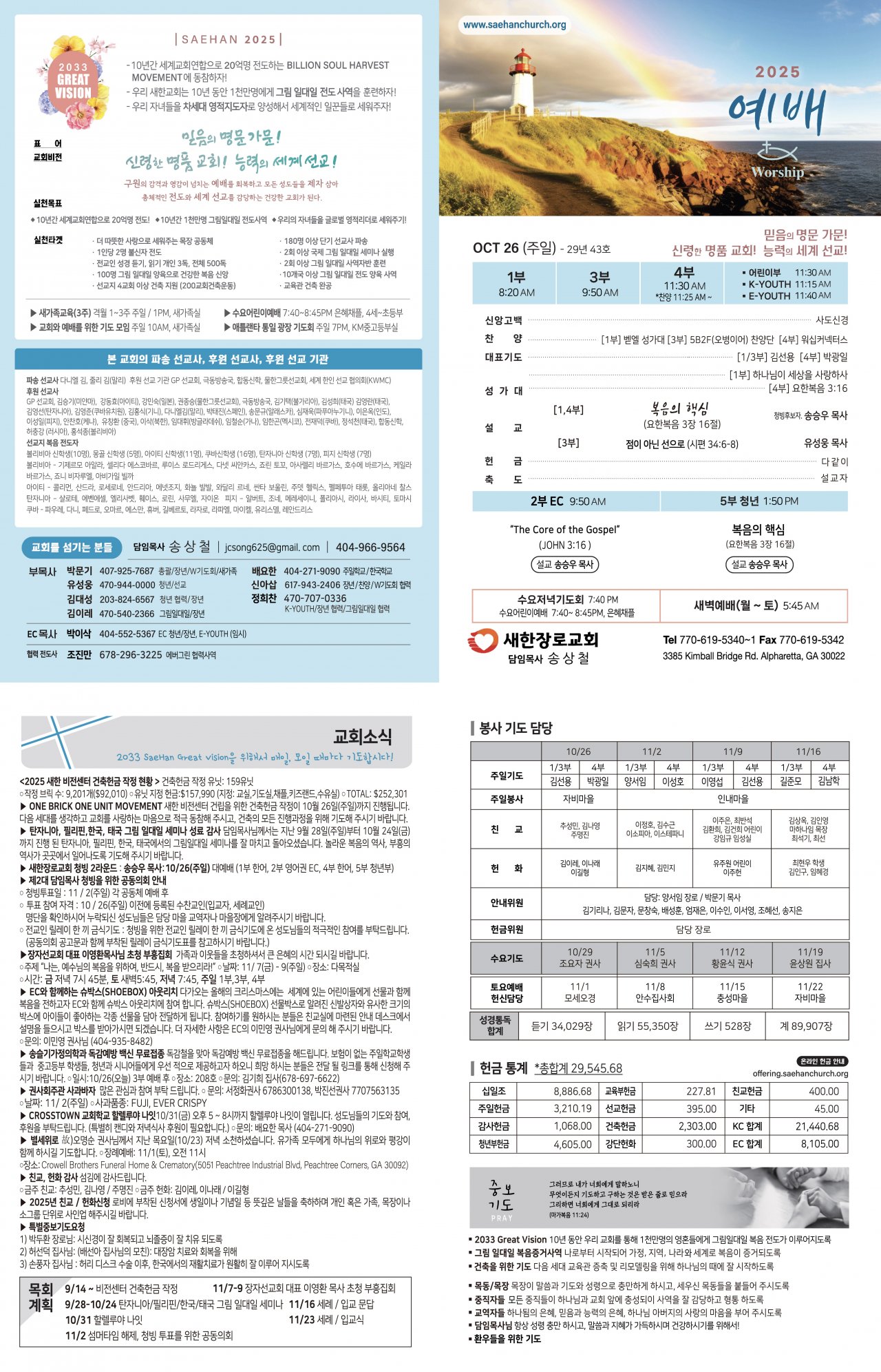 2025년 친교 / 헌화신청 로비에 부착된 신청서에 생일이나 기념일 등 뜻깊은 날들을 축하하며 개인 혹은 가족, 목장이나 소그룹 단위로 사인업 해주시길 바랍니다.