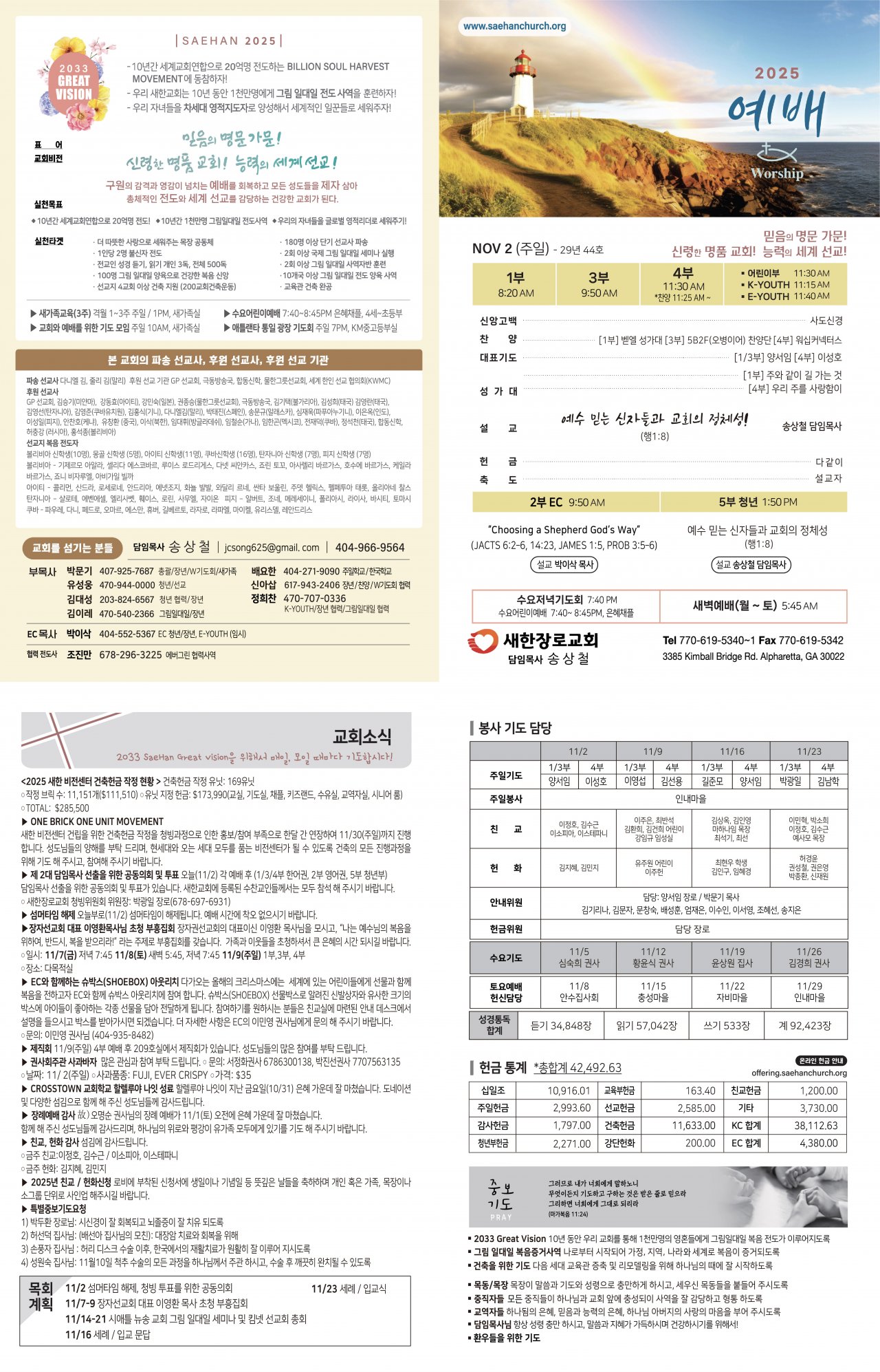○ 새한장로교회 청빙위원회 위원장: 박광일 장로(678-697-6931)