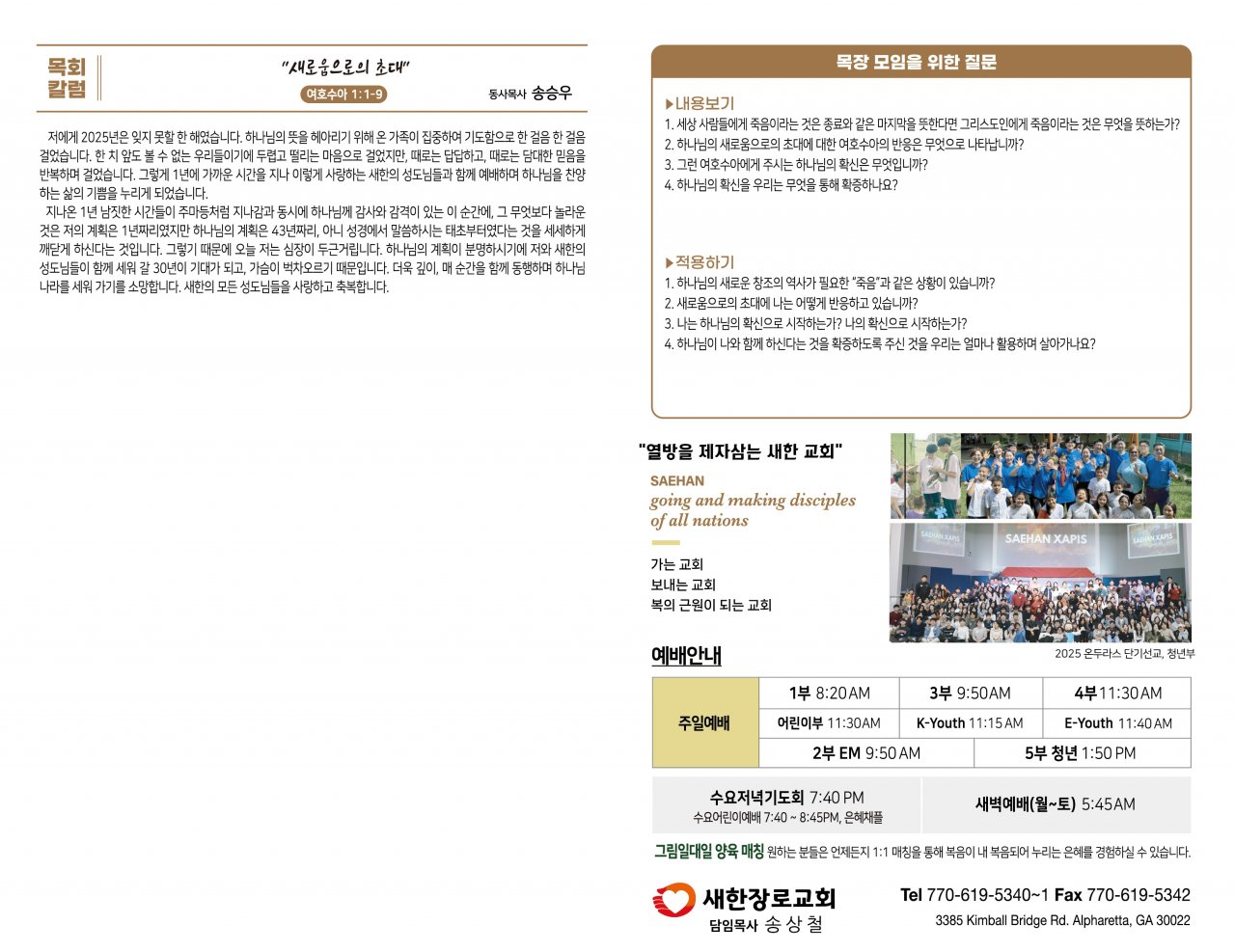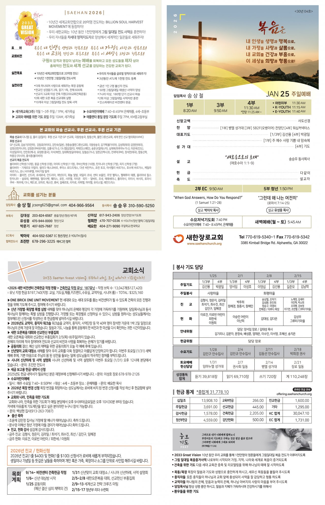 2025년도 헌금 내역서가 필요하신 분은 재정부에 신청해주시기 바랍니다. ○ 문의: 이성호 장로 678-978-2126