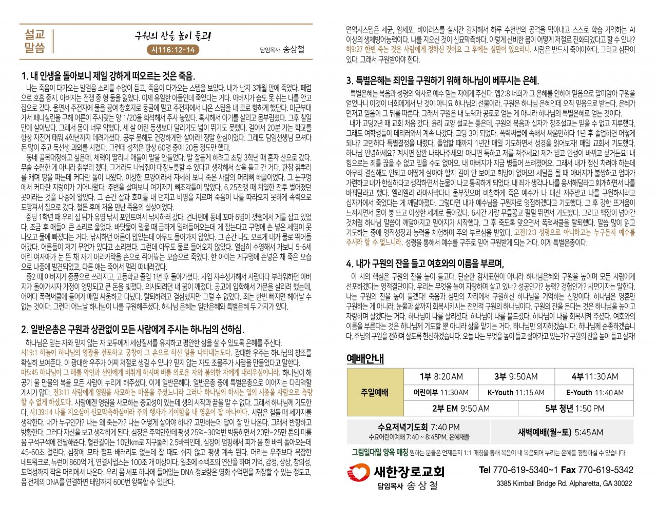 ○ 문의: 이성호 장로 678-978-2126