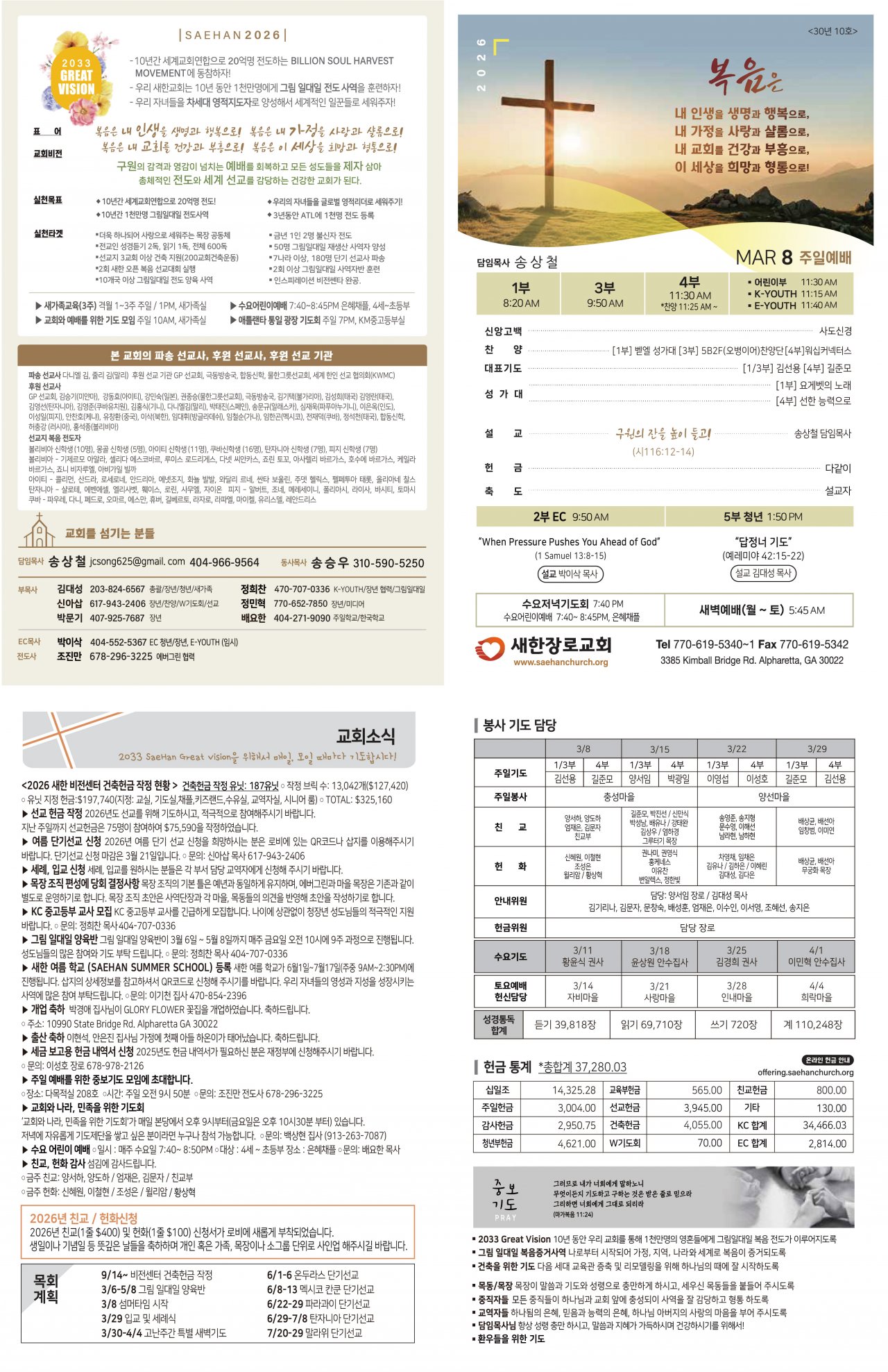 2026년 친교(1줄 $400) 및 헌화(1줄 $100) 신청서가 로비에 새롭게 부착되었습니다.