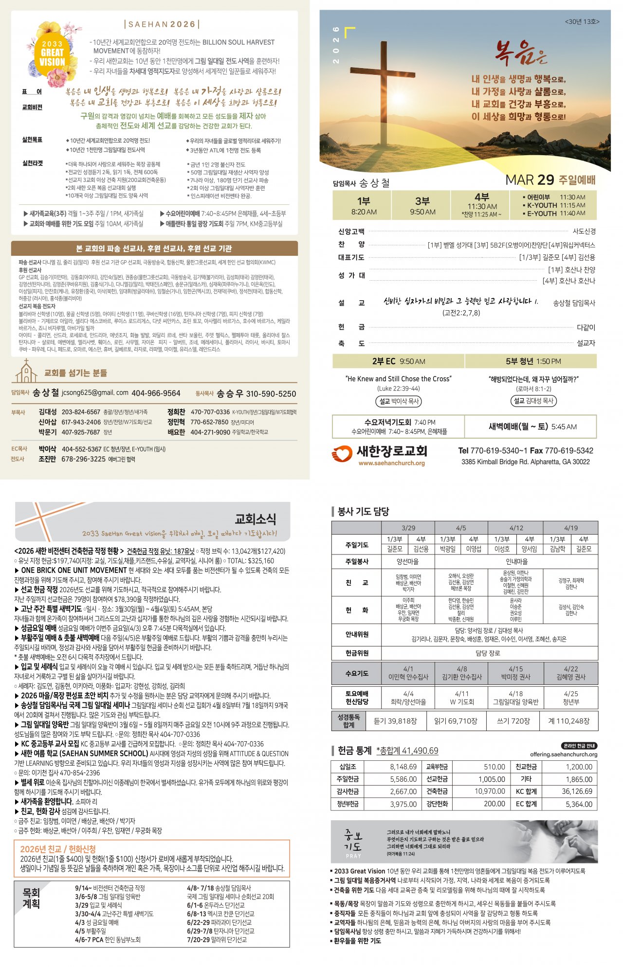 2026년 친교(1줄 $400) 및 헌화(1줄 $100) 신청서가 로비에 새롭게 부착되었습니다.